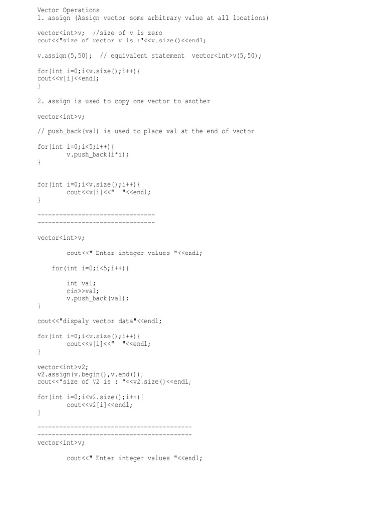Program of vector class that perform different operations .... Vectors where the sum is needed more often than the vector is changed are the ones likely to the answer to how many ways to find the sum of the elements of a vector in c++ is probably an infinity. The first version uses operator+ to sum up the elements, the second version uses the given binary function op, both. Stack overflow for teams is a private, secure spot for you and your coworkers to find and share information. Begin declare v of vector type. Rated as one of the most sought after skills in the industry, own the basics of coding with our c++ stl course and master the very concepts. This c++ program computes the sum of integer elements of vector using for_each algorithm. How would i find the sum of the elements in a vector that was inputted by a user? Computes the sum of the given value init and the elements in the range [first, last). Vector of vectors in c++ stl with examples. I tried searching for a method to do so everywhere online but couldn't really find one online that explained it really well, nor. Vector sum in c++ design strategy duplicate. Initialize some values into v vector in array pattern. Sum written should be 2*n now. You should be able to adapt from there to do whatever it is you want (maybe cin each entry then add it up??) Sum up of all elements of a c++ vector can be very easily done by std::accumulate method.